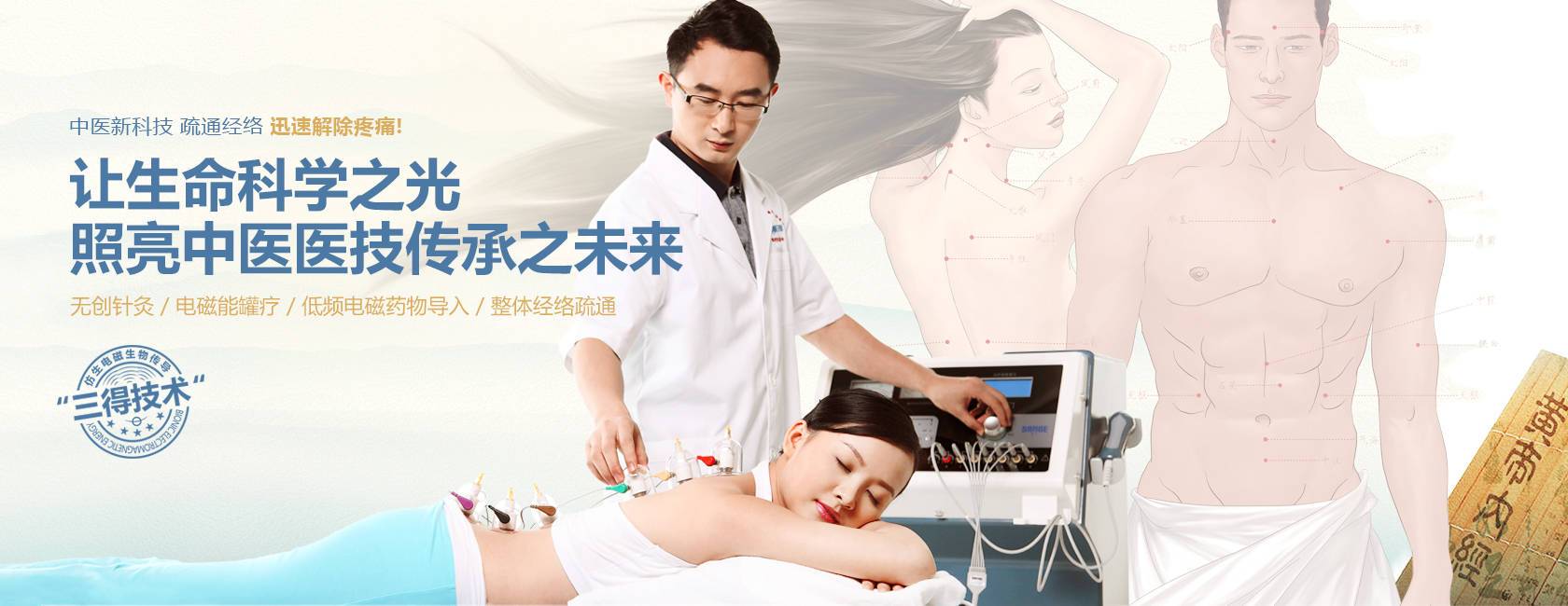 三得技術經過十余年研發及上萬例臨床驗證,被證實為一種安全、舒適、高效解除疼痛的物理治療新技術,它突破了中醫醫技“操作簡易化”和“數據量化”瓶頸,符合未來中西醫結合的大趨勢,也必將為人類健康帶來福音。